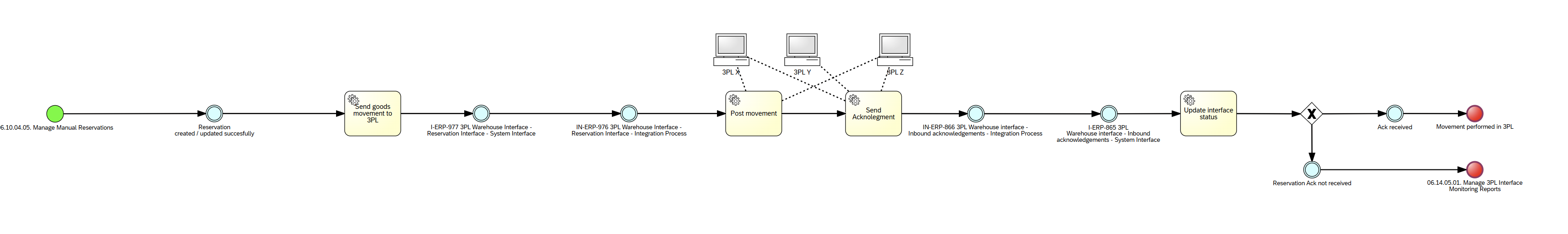 The purpose of this interface is to transmit reservation information created in SAP S/4HANA to the 3PL systems in order to provide visibility of planned or pre-allocated inventory movements. Reservations are used in SAP to reserve stock for specific processes or requirements before the corresponding physical movement is executed.