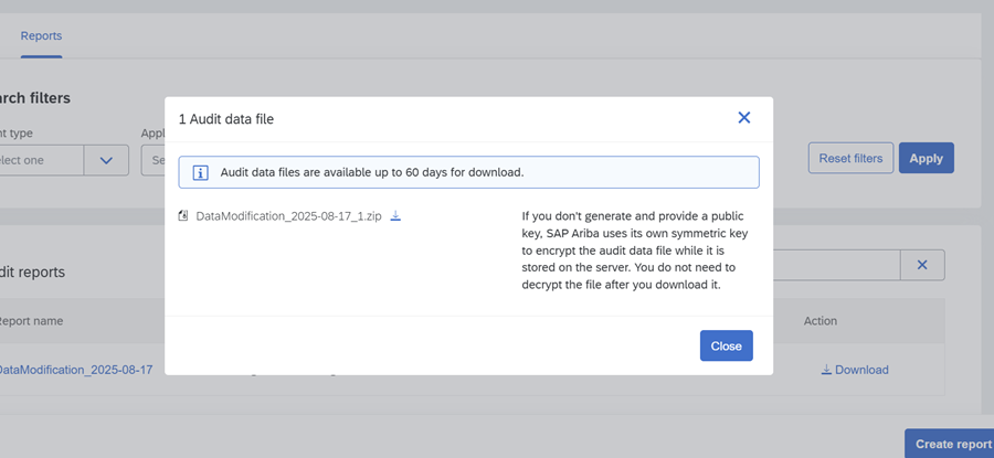 - New (ICM Audit Reports): Generate report in ICM Audit Log → Download encrypted ZIP → Decrypt locally.