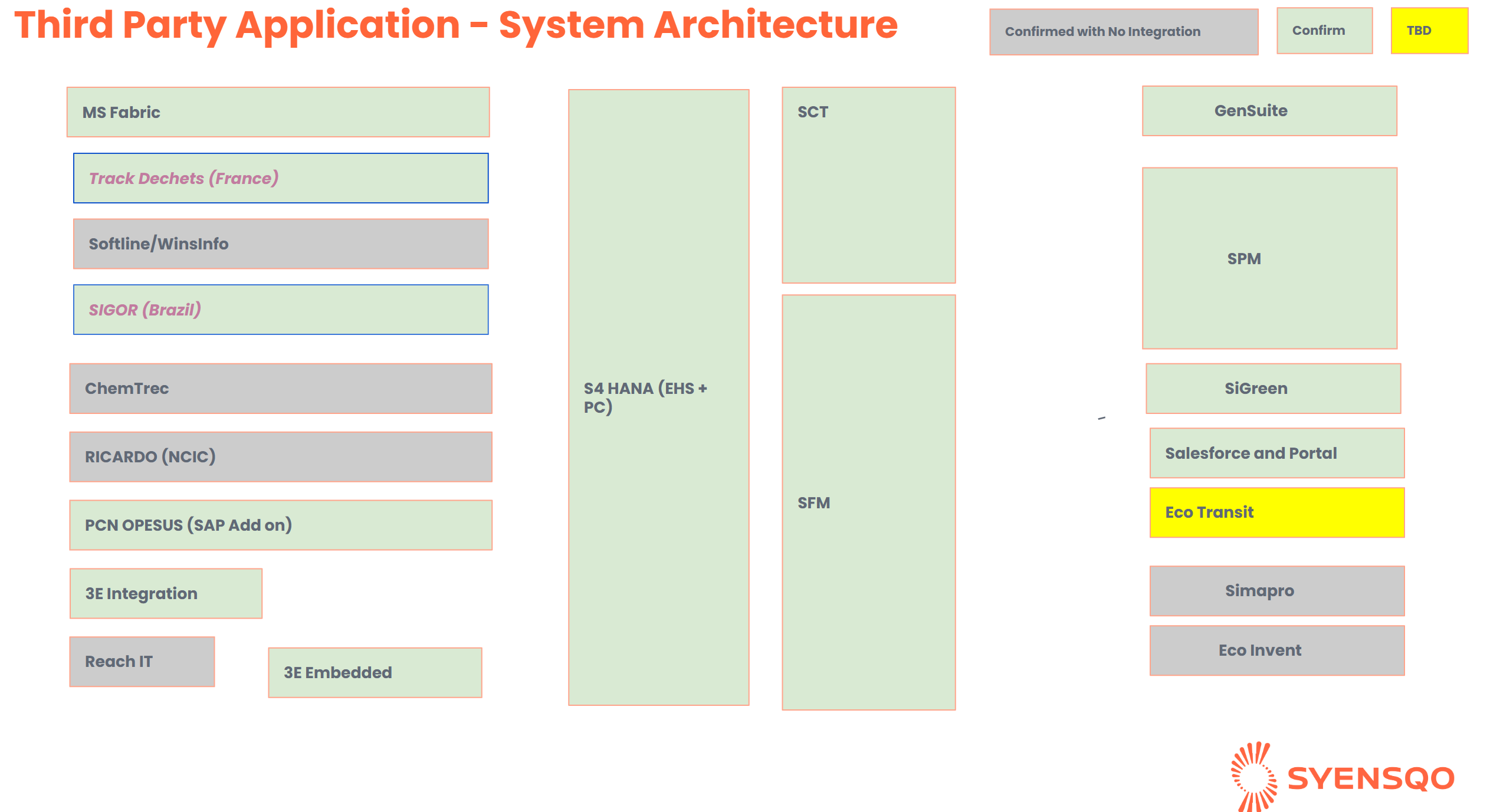 This document provides an overview of the system landscape and third-party integrations within the Safety-to-Sustainability (S2S) domain.