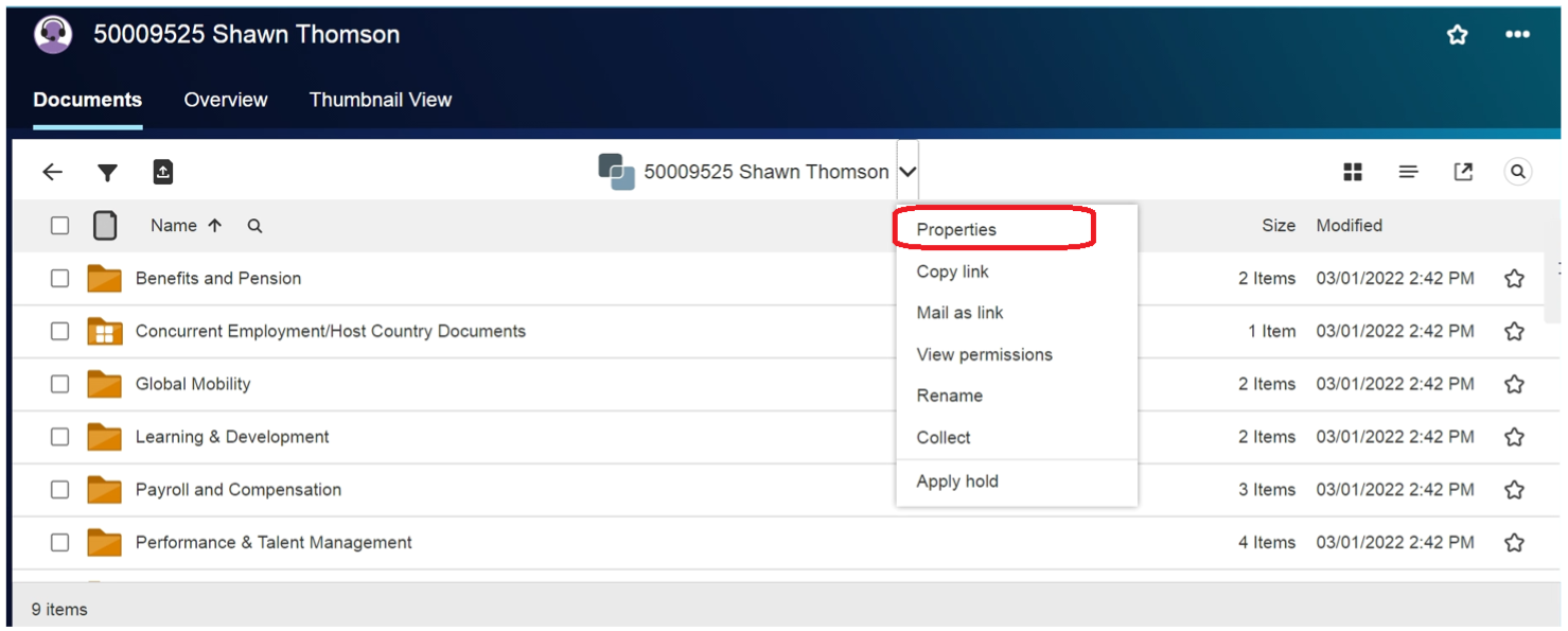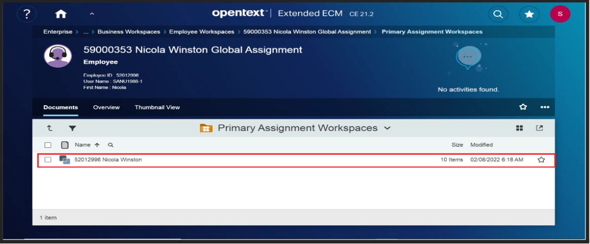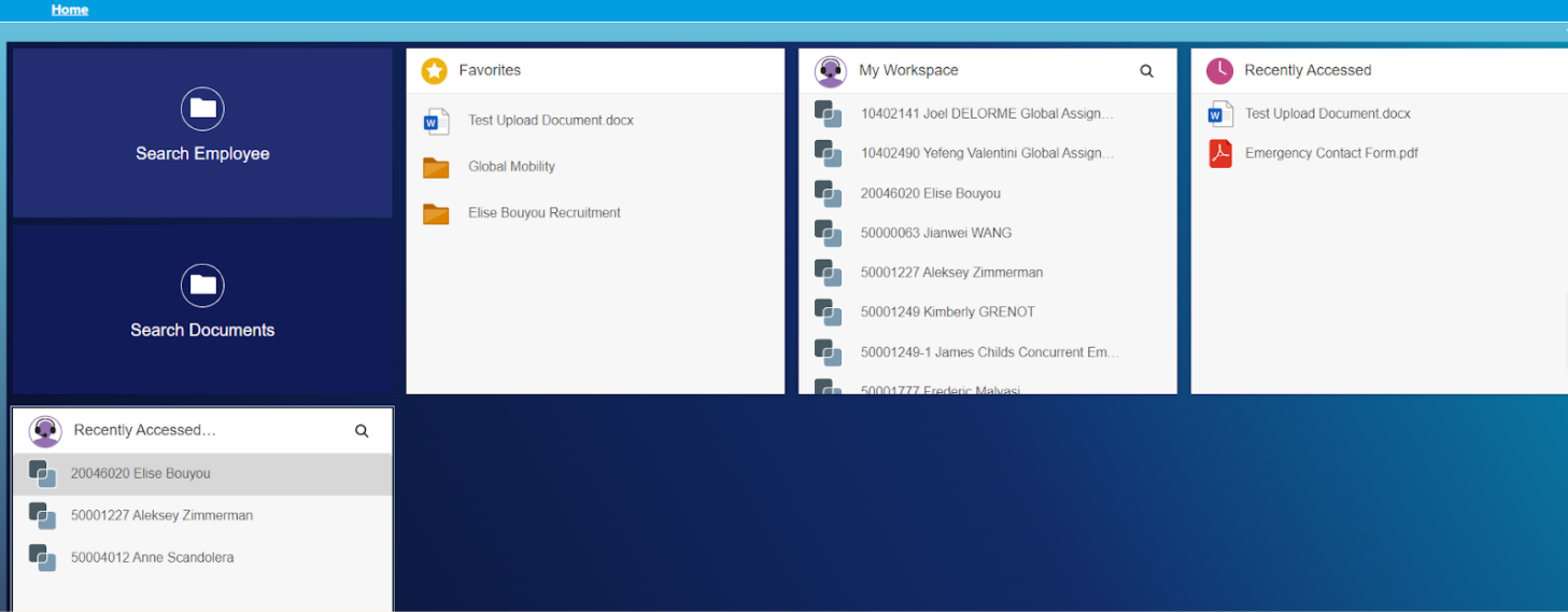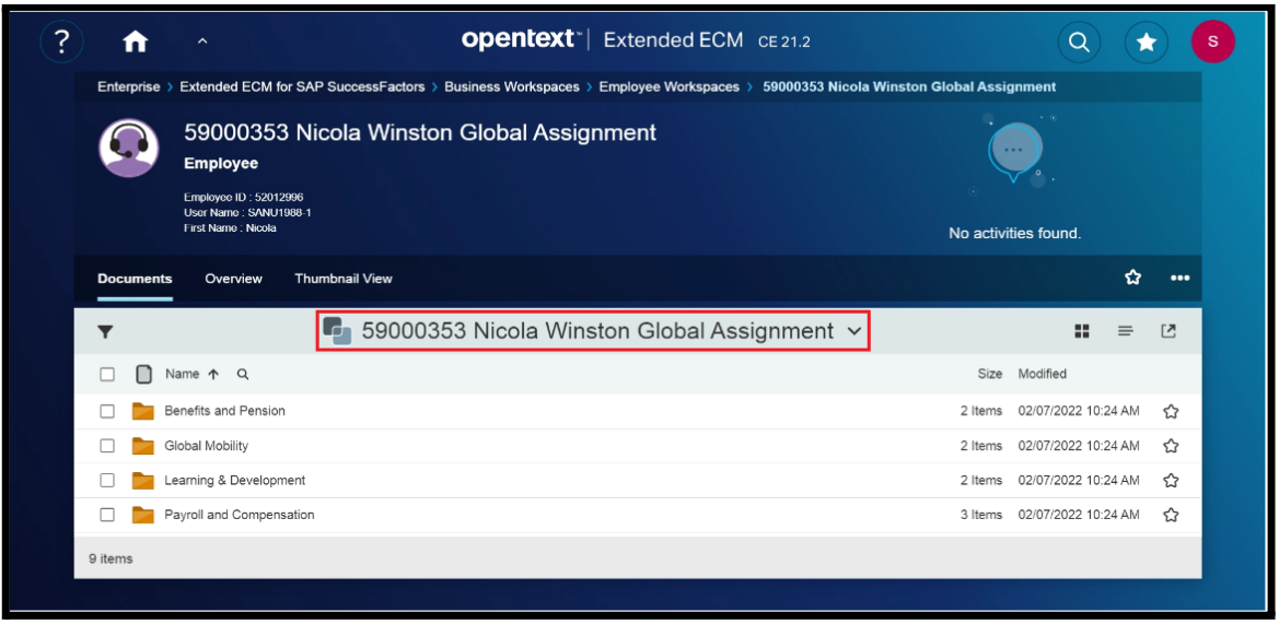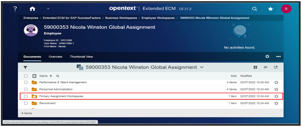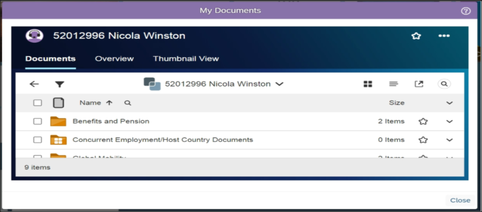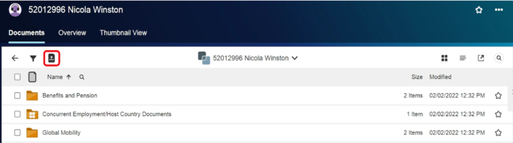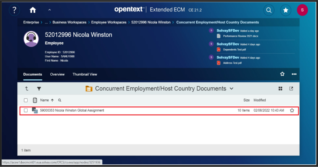 Using the Employee File tile under My Information, go to your Personal Employee File to see the folder structure. When you click on the “Concurrent Employment/Host Country Documents” folder then you will see your other assignment (Concurrent assignment in this case).
