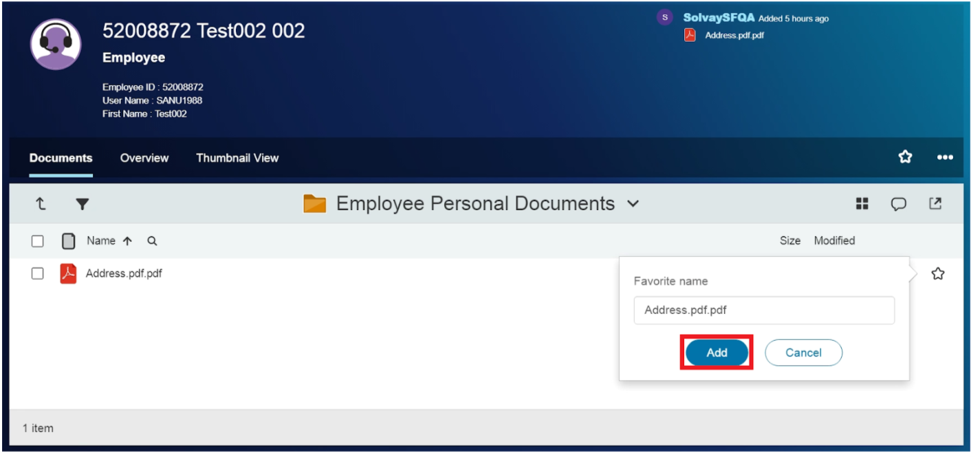 Whenever an uploaded document (fromSuccessFactors/OpenText) is not available in the respective folder inside the Employee file workspace, search for the 999 inbox using the below instructions,