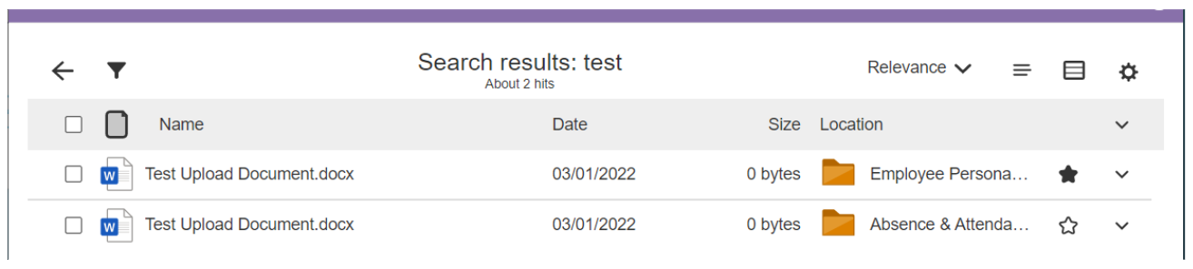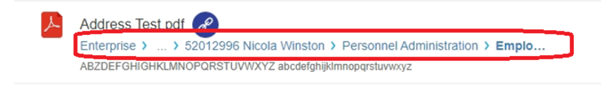 In Tabular View under each document name you will find the storage path of that document. In the example above you see this document is stored in the “Personnel Administration” folder and then a sub-folder “Emplo…”. To see the full path you can reduce the zoom level to 80% by clicking ctrl - and can enlarge by clicking ctrl +.
