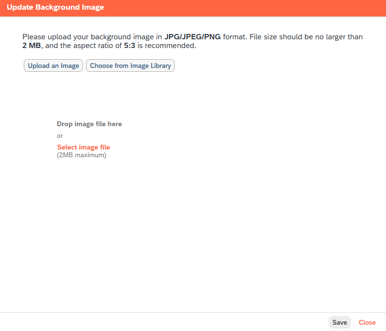 - In the top right corner of your screen click on "Header" and click on "Update Background image":