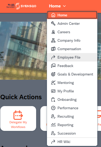 Step 2: Click on ‘Home’ and select ‘My Profile’ or you can directly access the ‘My Profile’ tile on the homepage