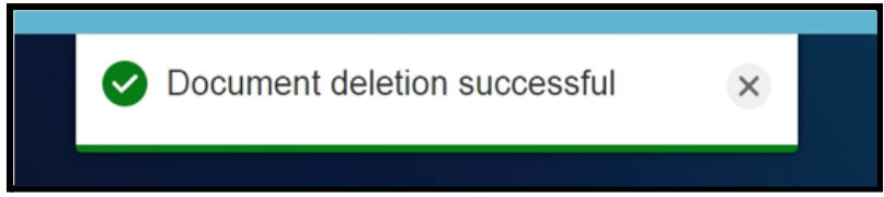 - If you click on the Delete button it will remove the document from the workspace and a success message will appear as shown below: