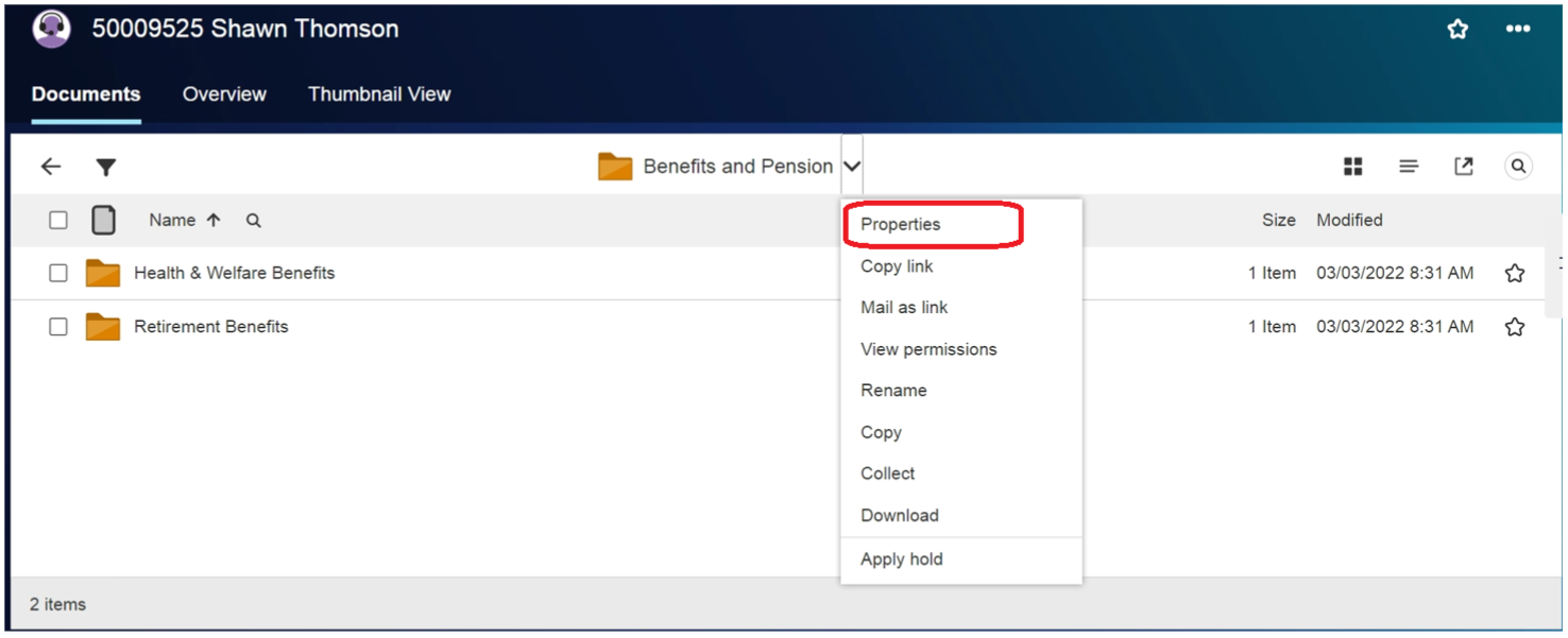 When an HR uploads or deletes a document in OpenText, it is initially placed in a staging folder called 999 Inbox within the Employee file workspace. This will not be visible in the Folder structure.
