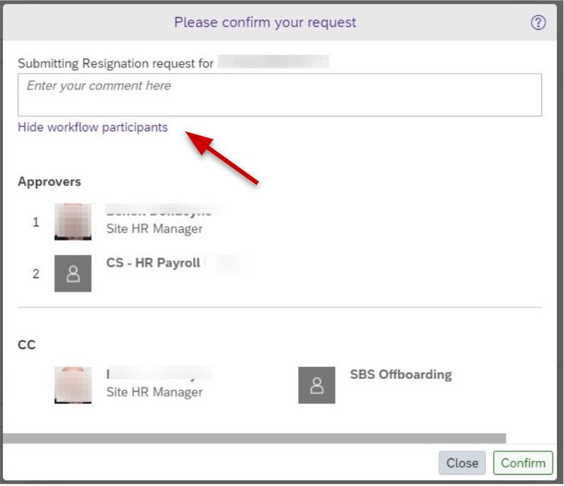 On this screen you can Enter a comment if needed, as well as review the Workflow Participants :