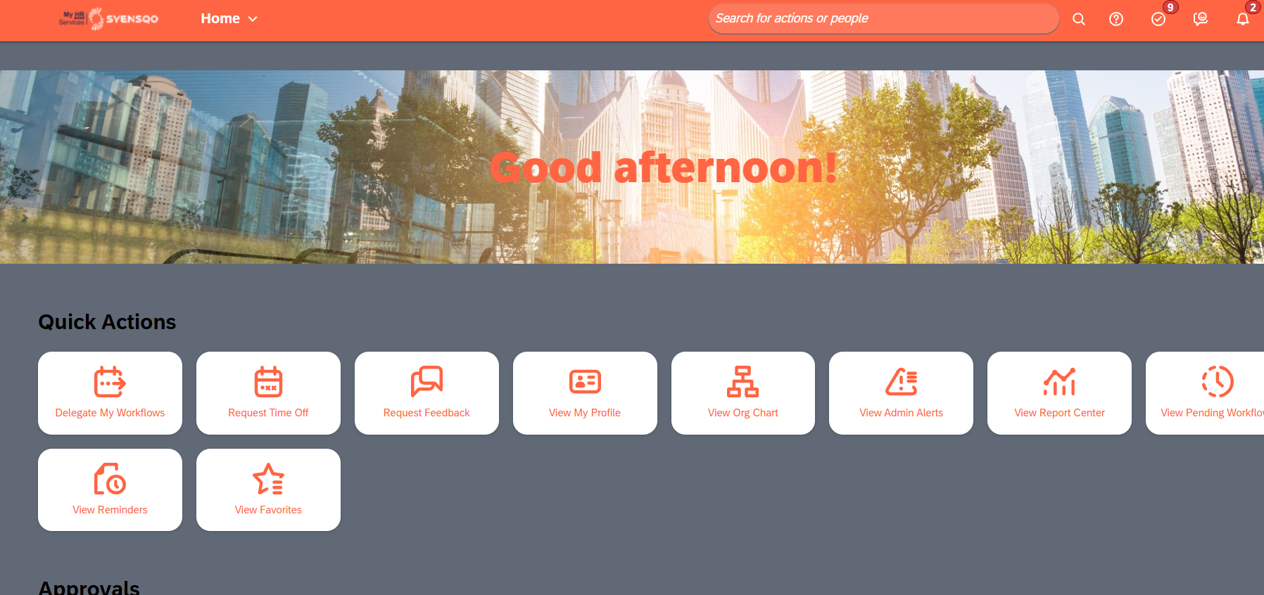 • Option 2: by typing employee name in the “Search for actions” box on the top right hand corner of the image below.