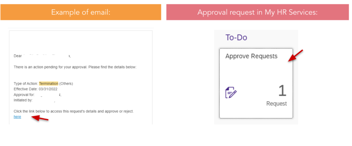 As Site HR Partner, you will receive Termination approval workflows and see the approval requests in your email or directly on My HR Services main screen: