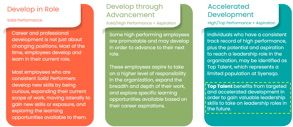 As a way to enable our Explorers to thrive, Syensqo prepares for the future and differentially invests in our top talent  (i.e. those identified and nominated for talent pools).