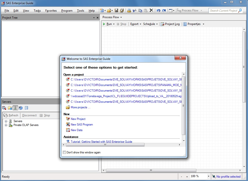 | STEP 1 : Launch SAS Enterprise Guide : 3 method 1 : in the Shorcut Bar 2 : In the Windows Menu 3 : From the EXE file C:\Program Files\SASHome\ SASEnterpriseGuide\7.1 |