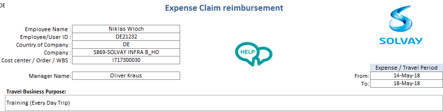 Solvay Internal Referent - The person inside Solvay which will assume the costs and is our direct contact for the Non Concur use (responsible person).