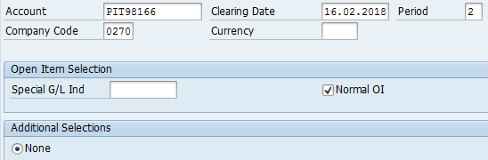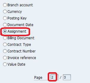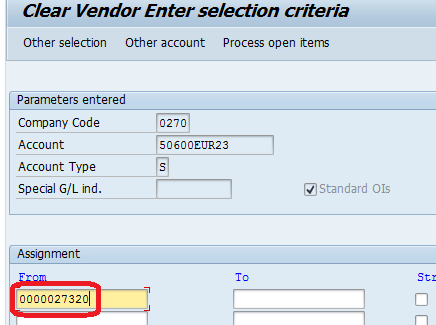 NOTE: S - For G/L Accounts (F-44) and K - For Vendor Accounts (F-03) - In the "Additional selections" choose the Assignment (if F-03 Select None) and then Process open items