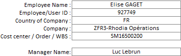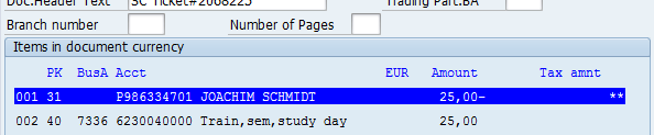 | Employee Name | Vendor | SAP | Company Code | CC / Order / WBS | Amount | Posting date | Posting doc. | Paym. ticket |