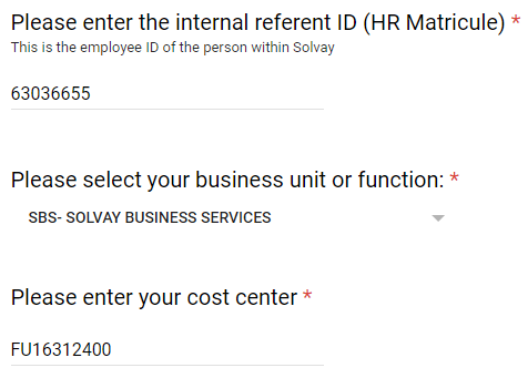 3) Enter the Solvay Internal Referent information