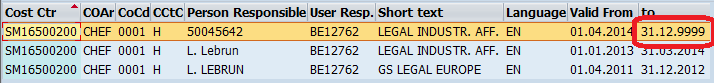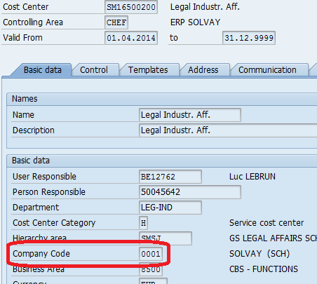 - In the first page you will find the Company Code which is associated to the cost element: