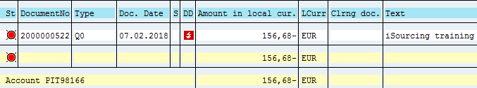 - Inside the cleared items of the vendor (FBL1N) you will now see the expense report (Q0) is cleared with the payment - green.