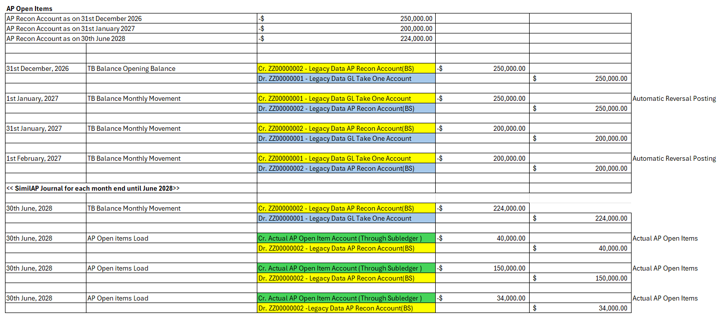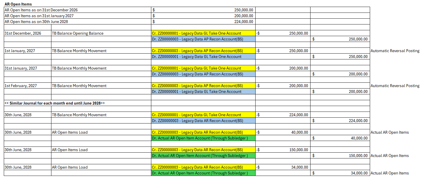 - For Periodic Movements Including Opening Balance, TB for open item managed accounts will be migrated into their mapped target mapped accounts. Reversal posting for each period will ensure automatic clearing of these lines items ensuring there will be no residual open item lines at the go-live period (posting date = cutover date),
