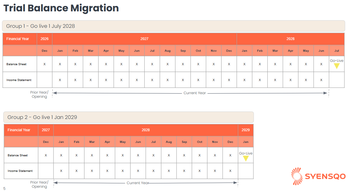 For Group 1 company codes, the migration will be based on balances as at 31st December 2026, and for Group 2 company codes, as at 31st December 2027, in line with the current go-live schedule.