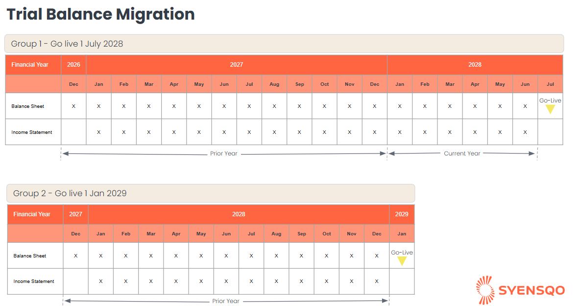 For Group 1 company codes, the migration will be based on balances as at 31st December 2026, and for Group 2 company codes, as at 31st December 2027, in line with the current go-live schedule.
